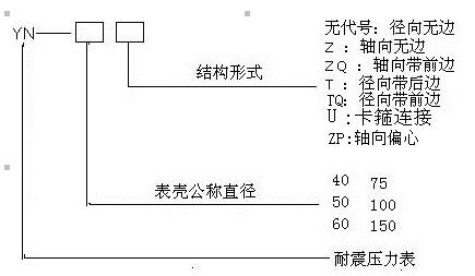 3)軸向前邊防震壓力表YN-40ZQ/50ZQ/60ZQ/75ZQ/100ZQ/150ZQ;
