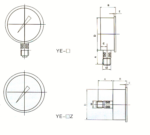 YE-100B YE-150B 膜盒壓力表(YE-film series box manometer) |
