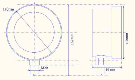 儀表使用干式陶瓷壓力傳感器,對安裝的角度無要求。儀表壓力導入口使用M20的外羅紋和壓力容器相連接,也可定制其他類型的連接接口。儀表外型尺寸見其它章節(jié)。
